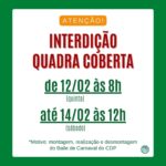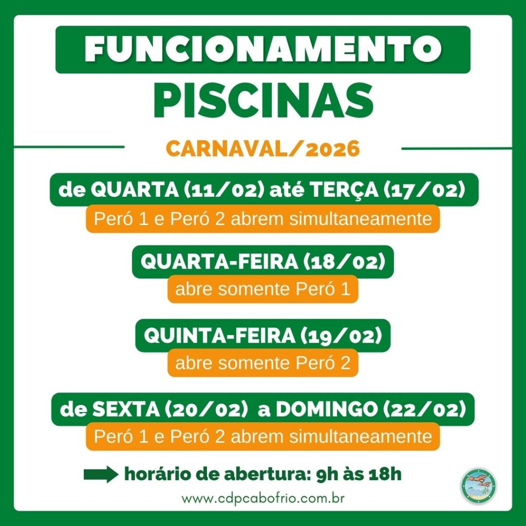 Atenção aos horários de funcionamento da administração na semana que vem. Haverá modificação no atendimento devido ao feriado de carnaval. Confira: SEGUNDA (16/02) – 7h às 17h (normal) TERÇA (17/02) – SEM EXPEDIENTE (feriado) QUARTA (18/02) – 13h às 17h (horário reduzido) QUINTA (19/02) – 7h às 17h (normal) SEXTA (20/02) – 7h às 17h […]