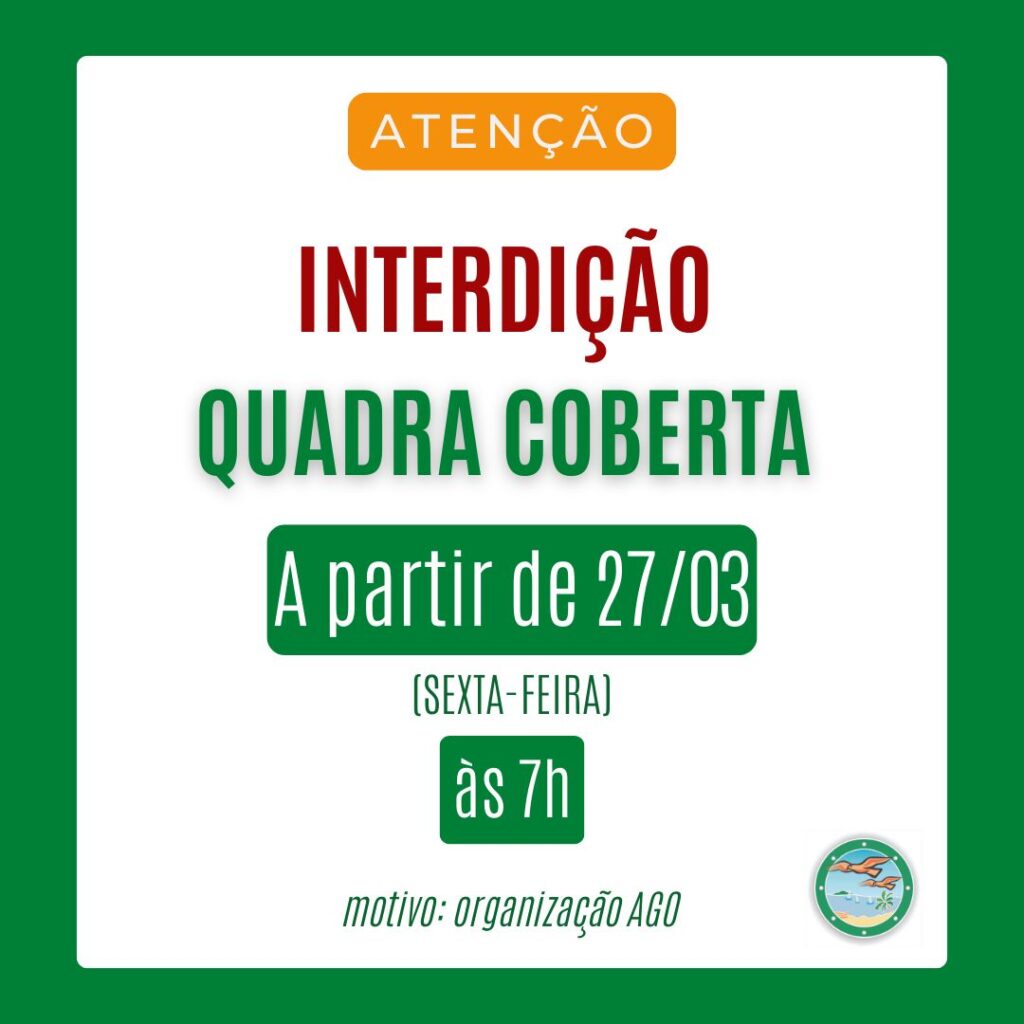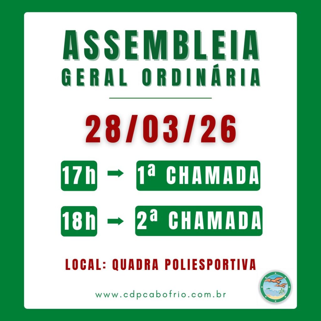A quadra coberta estará interditada a partir de hoje (sexta-feira – 27/03) para organização da AGO (Assembleia Geral Ordinária) de 2026 que será realizada neste sábado (28/03). O edital de convocação da AGO você confere no link abaixo: https://cdpcabofrio.com.br/pt/noticias/edital-assembleia-geral-ordinaria-2026/