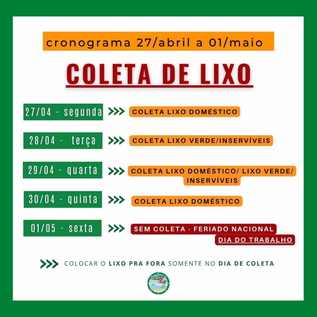 Atenção ao cronograma de COLETA DE LIXO nesta semana de feriado na sexta-feira (1º de maio):