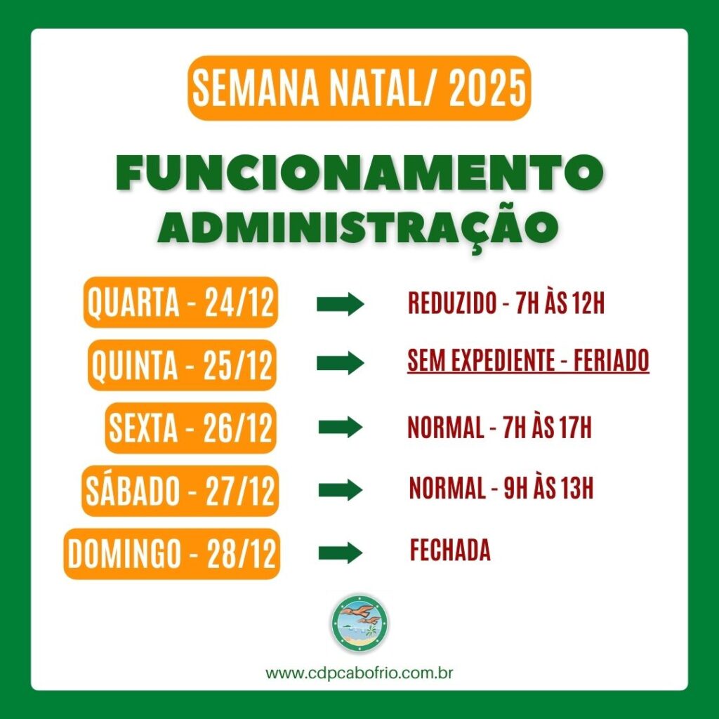 - outros dias – atendimento normal (7h às 17h) / sábado (9h às 13h).
