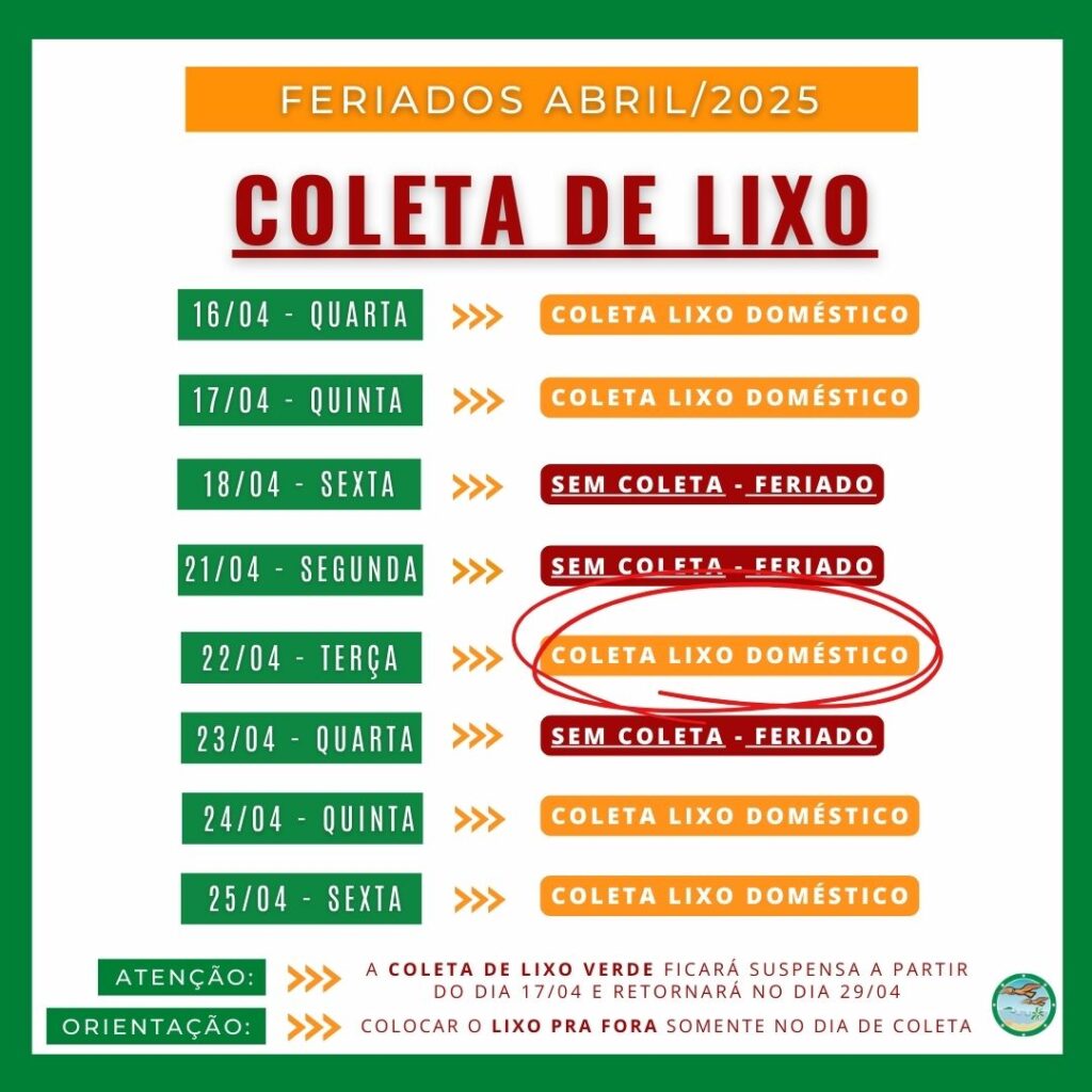 Confira o funcionamento do condomínio nesta terça-feira (22/04) após o feriado prolongado de Páscoa e Tiradentes.
