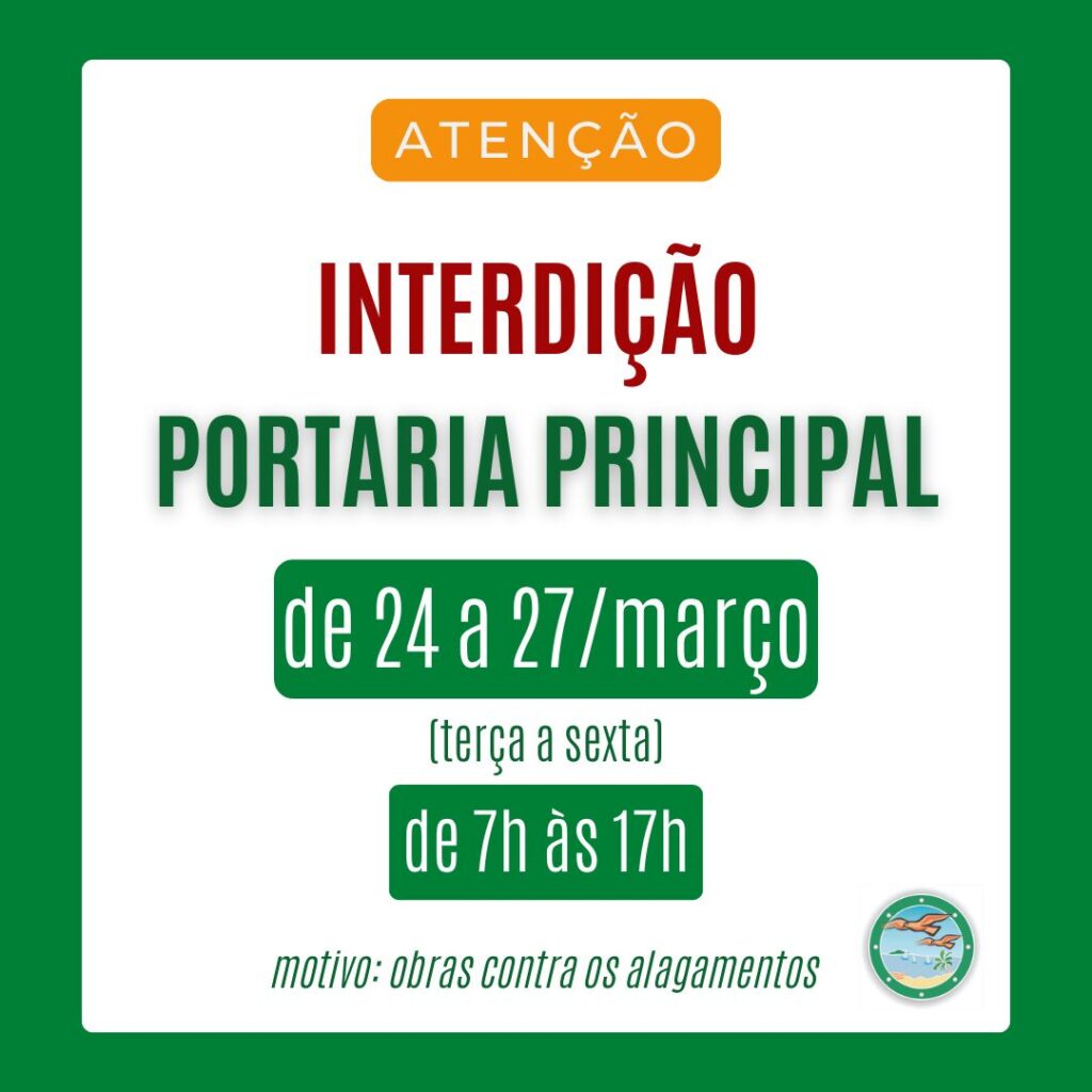 A partir de amanhã (terça – 24/03) , a PORTARIA PRINCIPAL ficará interditada devido a obras contra os alagamentos.