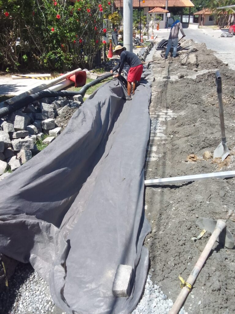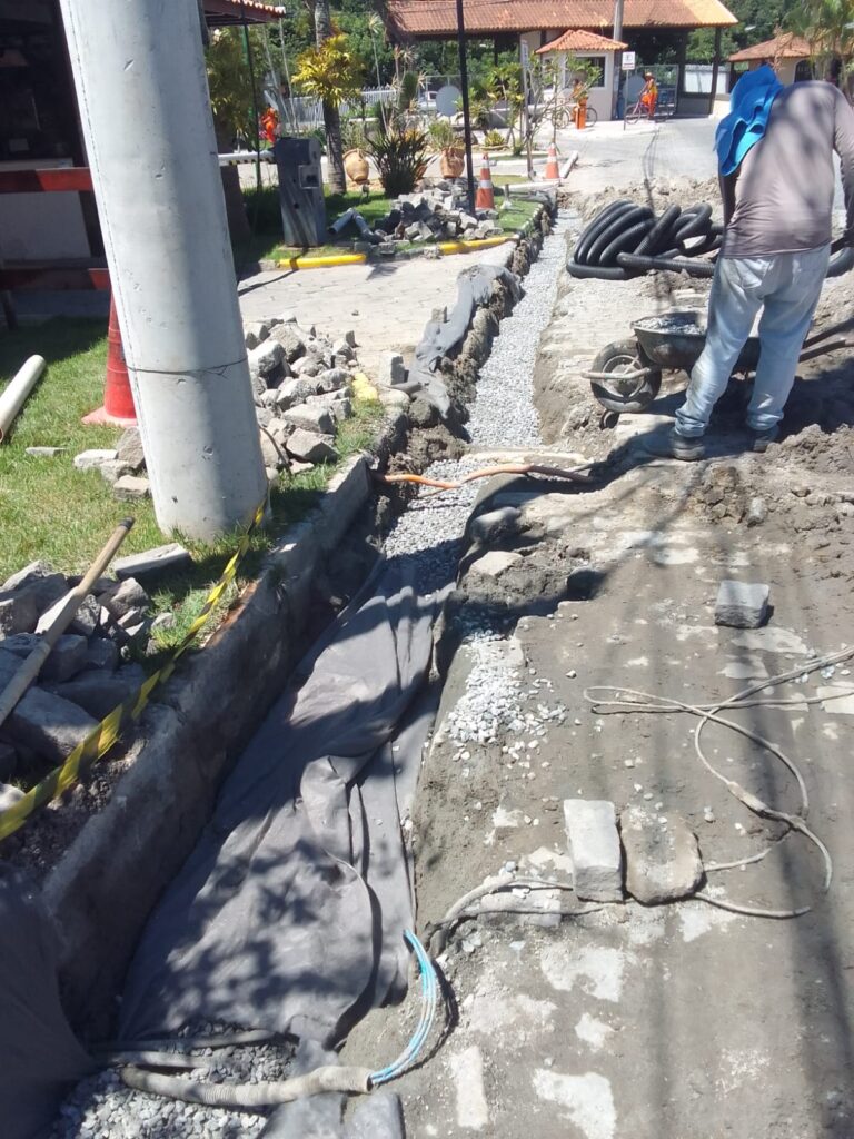 As obras que estão sendo realizadas na alameda 12, na entrada principal do condomínio, são para colocação de drenos para ajudar no escoamento da água da chuva.
