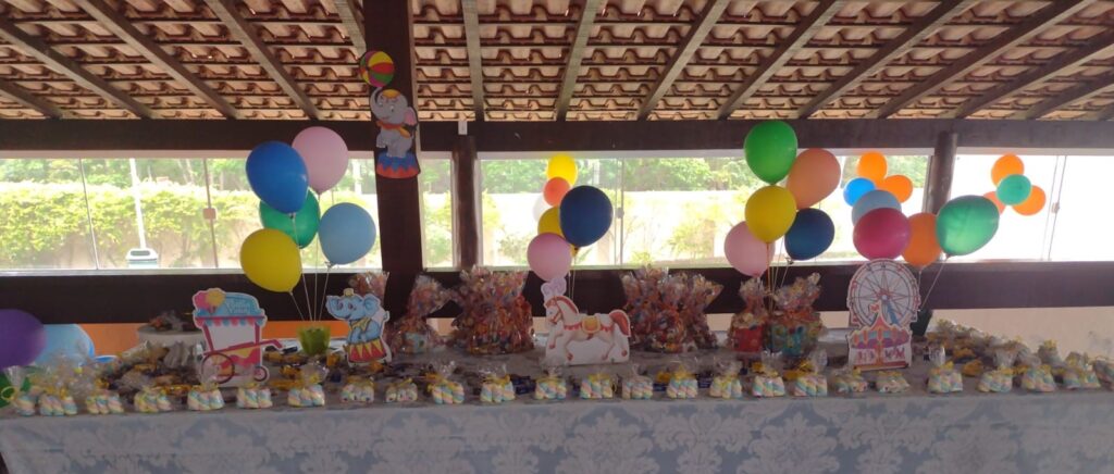E a diversão já está garantida com a variedade de brinquedos infláveis, música e muitas delícias como: pipoca, cachorro-quente e doces!